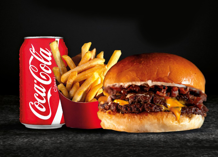 Burger doble, 1 Patatas mediano (180gr), 1 Bebida.