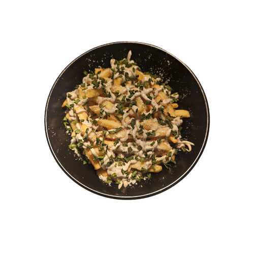 Descubre nuestra selección de patatas, el acompañamiento perfecto para tu hamburguesa. Desde las clásicas patatas fritas crujientes hasta nuestras opciones más innovadoras con salsas y toppings únicos, cada porción está preparada con el mismo cuidado y pasión que nuestras hamburguesas.