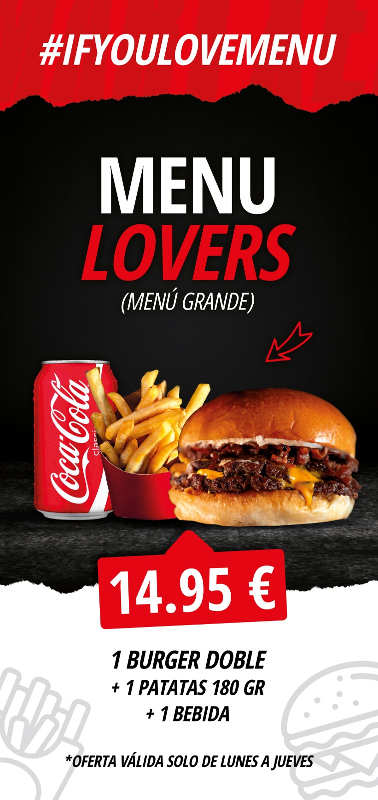 Burger doble, 1 Patatas 180gr, 1 Bebida